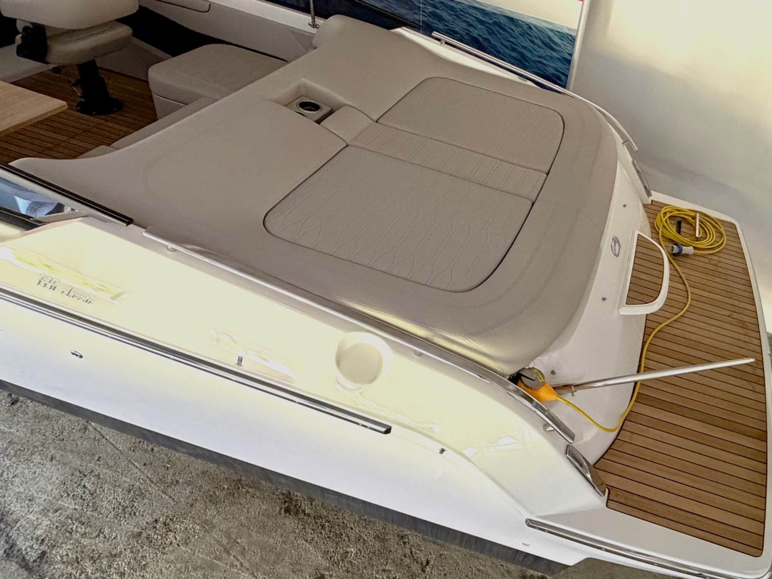 Il Cranchi E26 Classic è un motoscafo sportivo di circa 8 metri, carrellabile, con uno stile unico e sofisticato: un perfetto equilibrio tra rimandi vintage di eredità classica ed essenzialità contemporanea. Lo stile unico di questo modello si coniuga perfettamente sia per un uso giornaliero nel massimo comfort e sicurezza, che un possibile l’utilizzo come lussuoso tender. Questa unità, NUOVA, è magnificamente accessoriata con Elica di Prua, Chart Plotter GPS/ECO, VHF, Circuito 220 v con carica batterie, Verricello elettrico con ancora inox, Frigorifero cabina, wc elettrico, Capottina completa con bimini, Tutte le cuscinerie, Tavolo in teak, Radio stereo Fusion, Luci subacquee, Telo copripozzetto. Pavimento pozzetto , prua e plancia di poppa rivestititi in teak naturale. La propulsione è la massima applicabile : VOLVO PENTA V8 5.3/DP -S da 350 hp. VISIBILE ED IN PRONTA CONSEGNA presso il ns show rom in Liguria PREZZO MOLTO INTERESSANTE , DA VEDERE