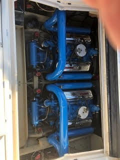 L’imbarcazione ha il suo gel coat originale, quindi non e’ stata ridipinta come la maggior parte degli scafi di quell’epoca, la scaletta e, come in origine, nel colore grigio Sahara e non coperta di antivegetativa. Invaso originale ridipinto nel colore dello scafo e dotato di 4 ruote piroettanti, sempre tenuta al coperto in un cantiere a Venezia. I motori Riva Thermo Electron Crusader (2 x 350 CV di 7,4 litri ciascuno)sono originali, revisionati, controllati e dotati di accensione elettronica (non ci sono le puntine) Ore di moto 970 circa, manutenzione a cura meccanico Riva di Sarnico. Il pozzetto e’ completamente grigio Sahara, cosi’ come la tappezzeria, tutta originale. Cuscineria dotati di copri sedili, divano e cuscini del prendisole in spugna beige fatti su misura da tappezziere. Cuscineria interna originale nella sua tappezzeria e dotata di copri cuscini.